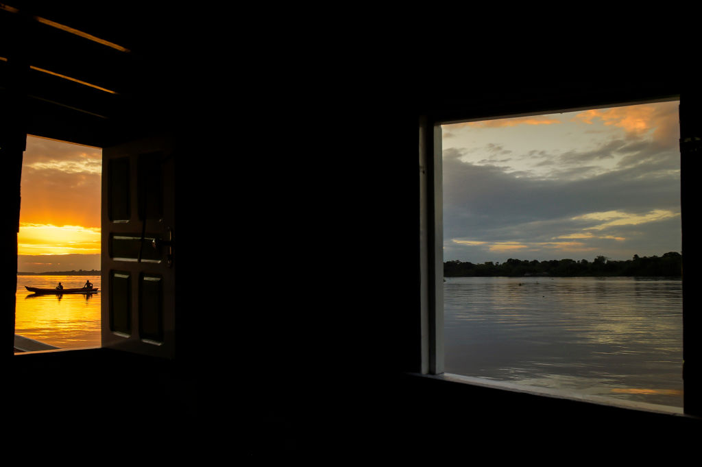 | Image title: ILHA DE MARAJO, BRAZIL - JULY 30: A general view of one of the Marajo Island rivers amidst the coronavirus pandemic on July 30, 2020 in Ilha de Marajo, Brazil. The UBSF (Basic Fluvial Health Unit) hospital boat offers health care to the riverside population (Ribeirinhos) of Marajo Island, a large delta island bordered by the Amazon River and the Atlantic Ocean in the state of Para. The boat houses a team of 12 health professionals who traverse the island's rivers near the city of Melgaco every month for 10 days. The two-story hospital boat includes one floor with a professional structure for serving the population and one floor with cabins, kitchen and bathroom for health workers and the crew. Health professionals provide dental care, general care, gynecological, emergency and tests for COVID-19. (Photo by Pedro Vilela/Getty Images) |