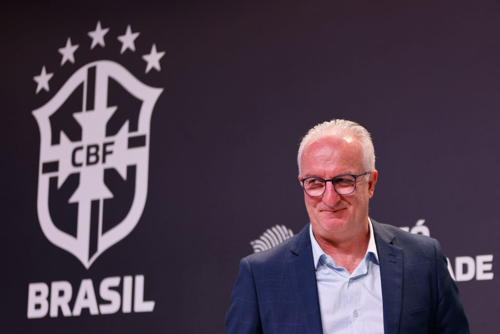 | Image title: RIO DE JANEIRO, BRAZIL - MARCH 1: Coach of Brazil Dorival Junior speaks during a press conference to announce the squad that will travel to Europe to play friendlies against England and Spain on March 1, 2024 in Rio de Janeiro, Brazil. (Photo by Wagner Meier/Getty Images) |