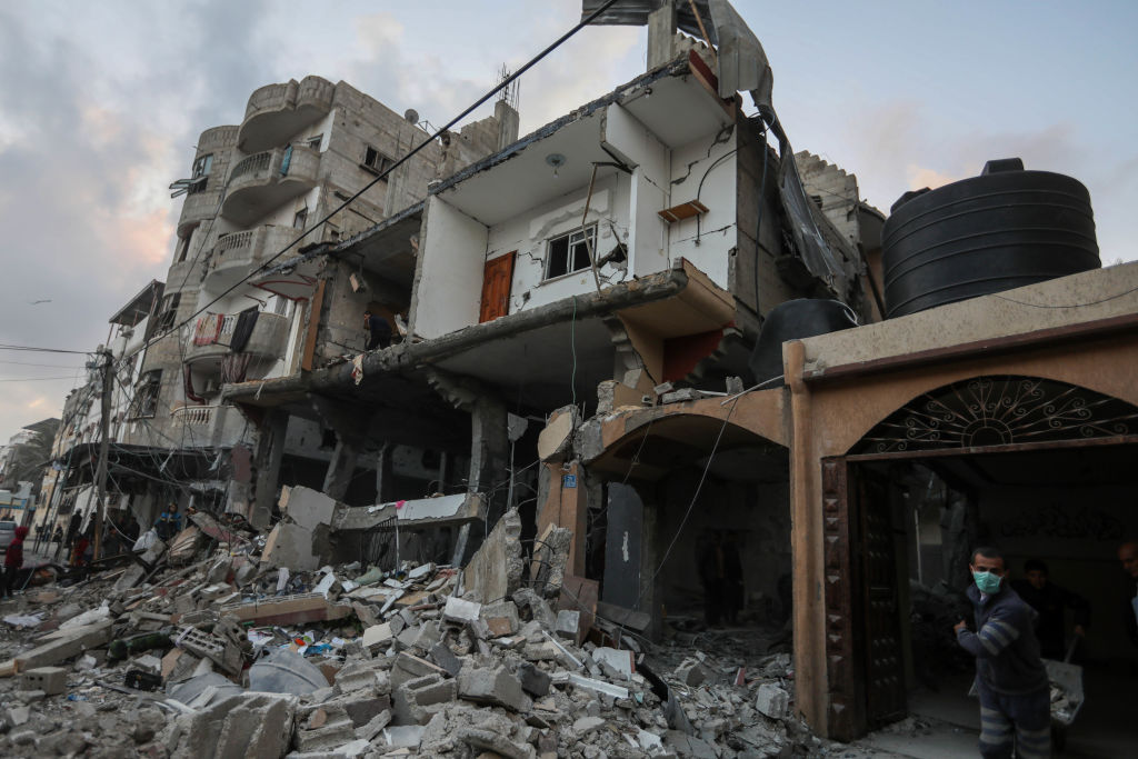 | Image title: RAFAH, GAZA - FEBRUARY 24: People inspect damage to their homes following Israeli air strikes on February 24, 2024 in Rafah, Gaza. Strikes have intensified as Israel reiterated its intent to press on with a ground offensive in Gaza's southern city of Rafah where some 1.4 million internally displaced Palestinians are sheltering, whilst a growing number of countries express alarm over the operation. (Photo by Ahmad Hasaballah/Getty Images) |