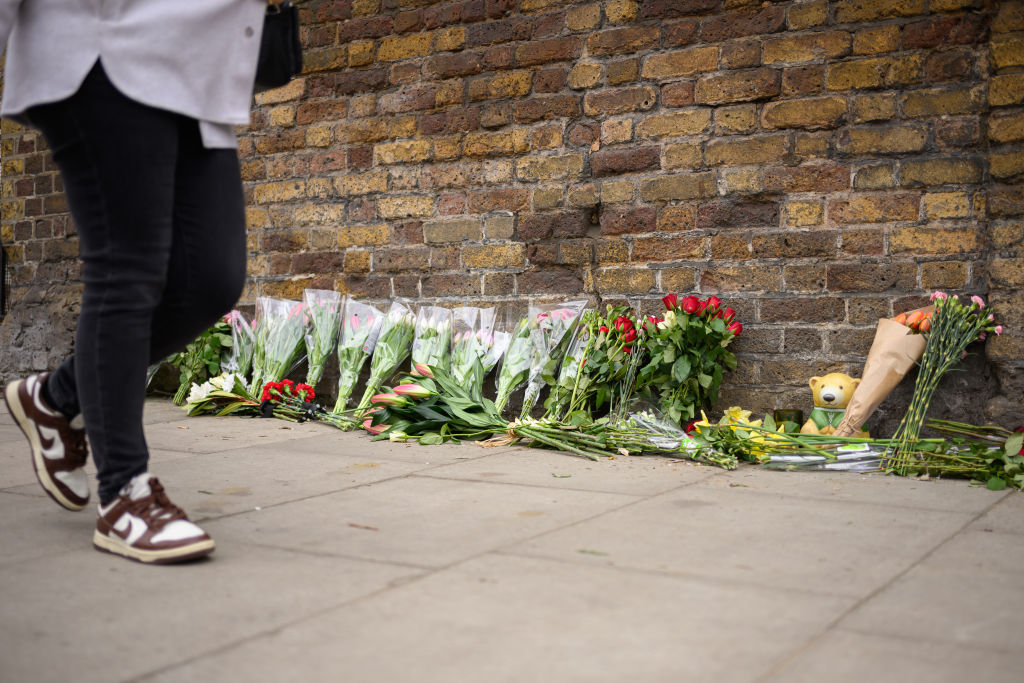 | Image title: LONDON, UNITED KINGDOM - MARCH 23: Flowers placed for those killed in the attacks on the Crocus City Hall near Moscow are seen outside the Embassy of Russia, on March 23, 2024 in London, United Kingdom. The Islamic State Group has claimed the attack, which has so far seen a death toll of 115, but this number is expected to rise. (Photo by Leon Neal/Getty Images) |